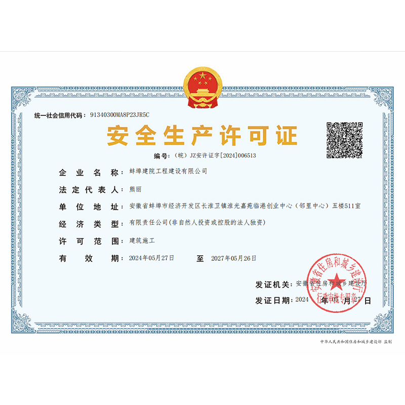 蚌埠建院工程建設(shè)有限公司安許證