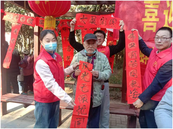 無聯(lián)不成春,有聯(lián)春更濃,樂居公司工作人員提前悉心準(zhǔn)備書寫春聯(lián)所需的毛筆、墨汁、紅紙等材料?;顒蝇F(xiàn)場,紅幅高掛,紅紙鋪展,墨香四溢,氣氛溫馨。書法愛好者們精挑春聯(lián)佳對,揮毫潑墨在紙上揮灑自如,將吉祥如意的祝福寄托在筆墨之間,不一會一個個飽含神韻的“福”字躍然紙上,一幅幅沾滿墨香的春聯(lián)鋪滿桌面,洋溢新春祝福的同時也傳遞著對傳統(tǒng)文化的尊崇和熱愛。在熱鬧的氛圍中,居民們紛紛前來排隊等候,領(lǐng)取屬于自己的那份福運?,F(xiàn)場歡聲笑語,為即將到來的春節(jié)增添了濃濃的喜慶氣氛。